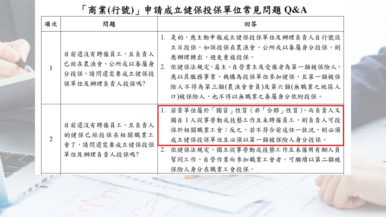 要留意的是,當你請了第一位員工開始,原則上就要成立健保單位了。