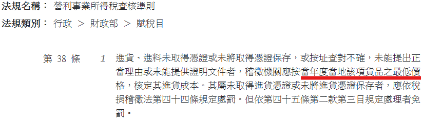 依據《營利事業所得稅查核準則》第38條,如果你什麼證明都拿不出來,國稅局可是會直接用當地最低價格來認定你的成本,讓你吃大虧。